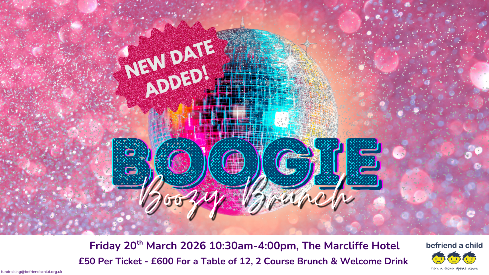 For more information visit: https://www.befriendachild.org.uk/events/boogie-boozy-brunch-friday/