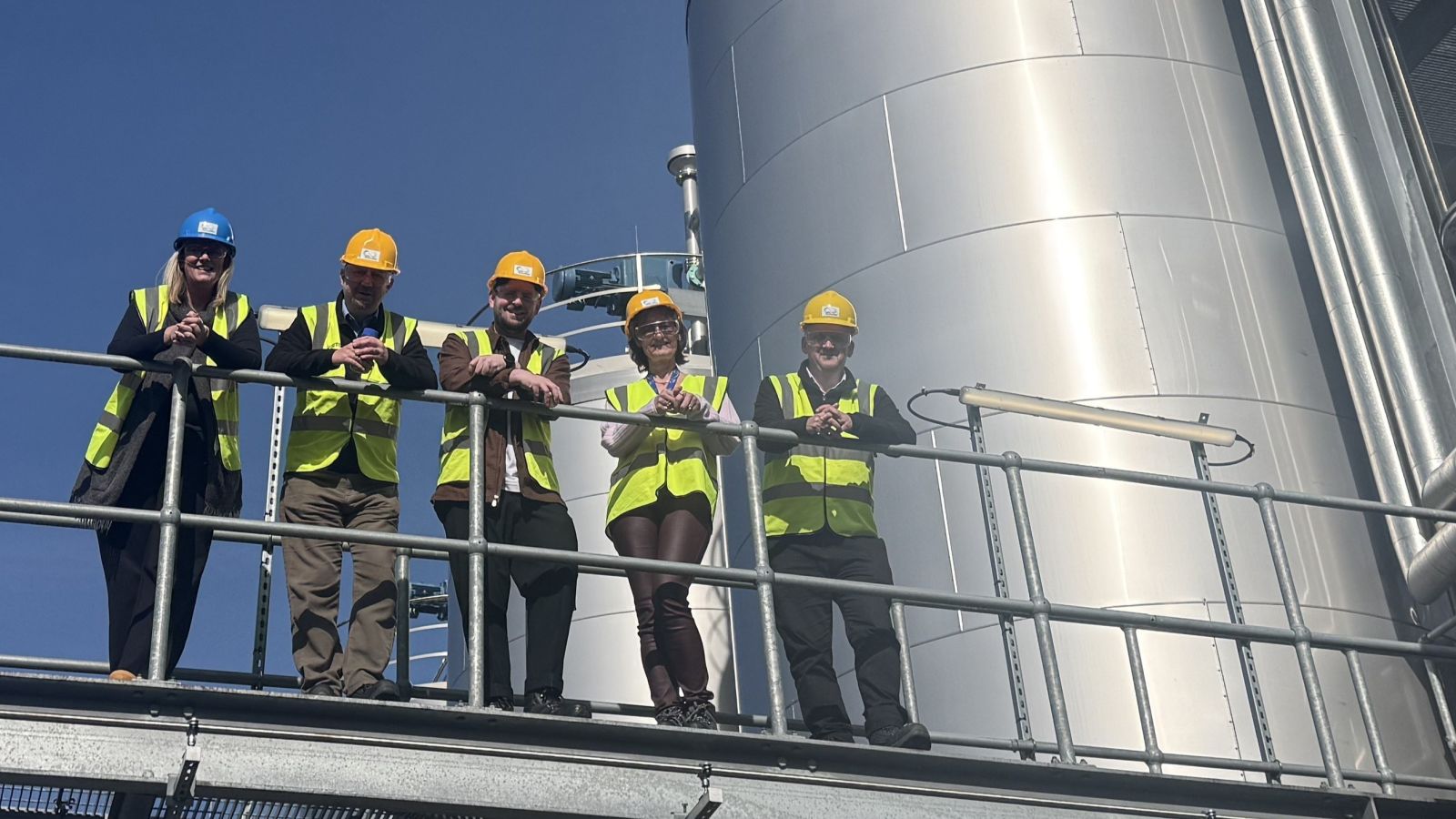 “Toasting” the partnership with pot ale – residue from whisky distilling used as a feedstock by Celtic Renewables. Left to Right: Ian Sanders, Chief Commercial Officer, NCIMB; Dr Reuben Carr, Technology Commercialisation Manager, NCIMB; Bettina Brierley, Chief Commercial Officer, Celtic Renewables; Lorna Woodcock, Head of Technical, Research & Innovation, Celtic Renewables; and Dr Darren Scobie, Applied Research Lead, Celtic Renewables, the Celtic Renewables plant in Grangemouth.