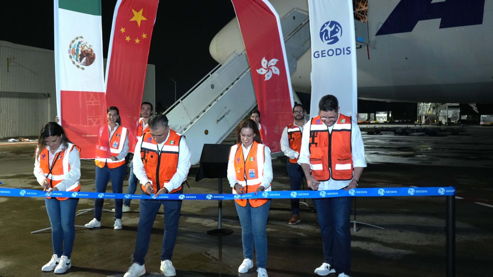 The 500th flight was celebrated with a ceremony at the Guadalajara airport upon the flight’s arrival, which included a ribbon cutting with GEODIS leaders and the unveiling of a commemorative plaque.