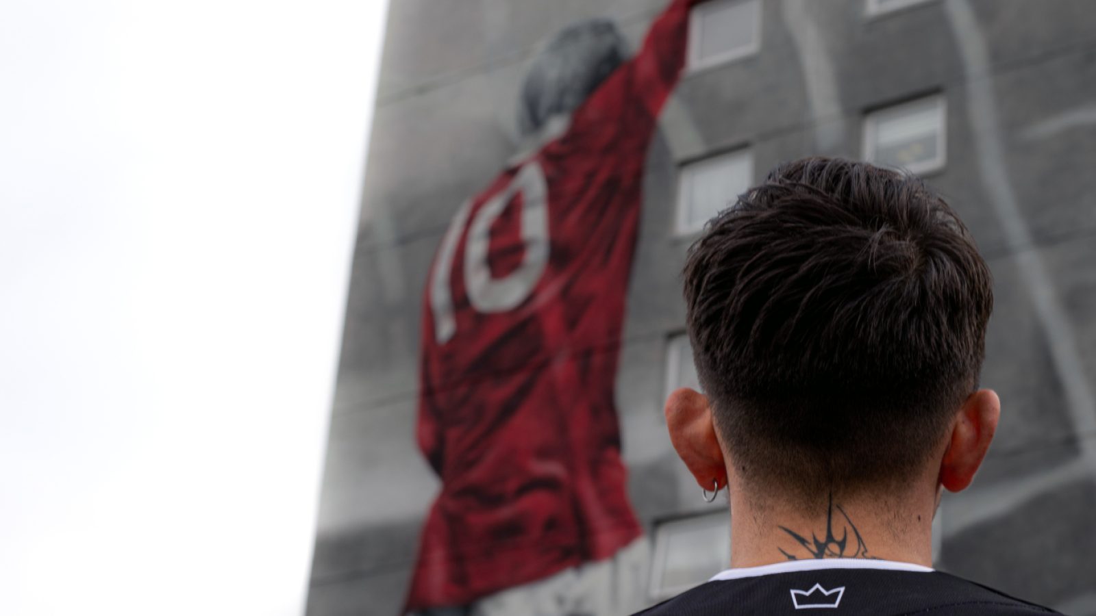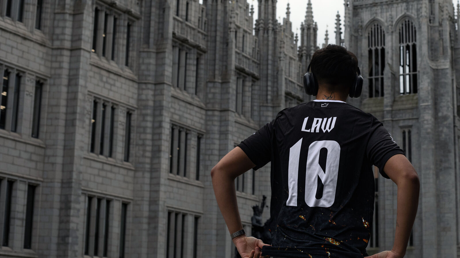 The kit’s lettering and Denis’ iconic number 10 were designed by Jay Ferguson, also a Communication Design student, inspired by the gothic architecture of the Silver City and the statue’s location opposite Marischal College.