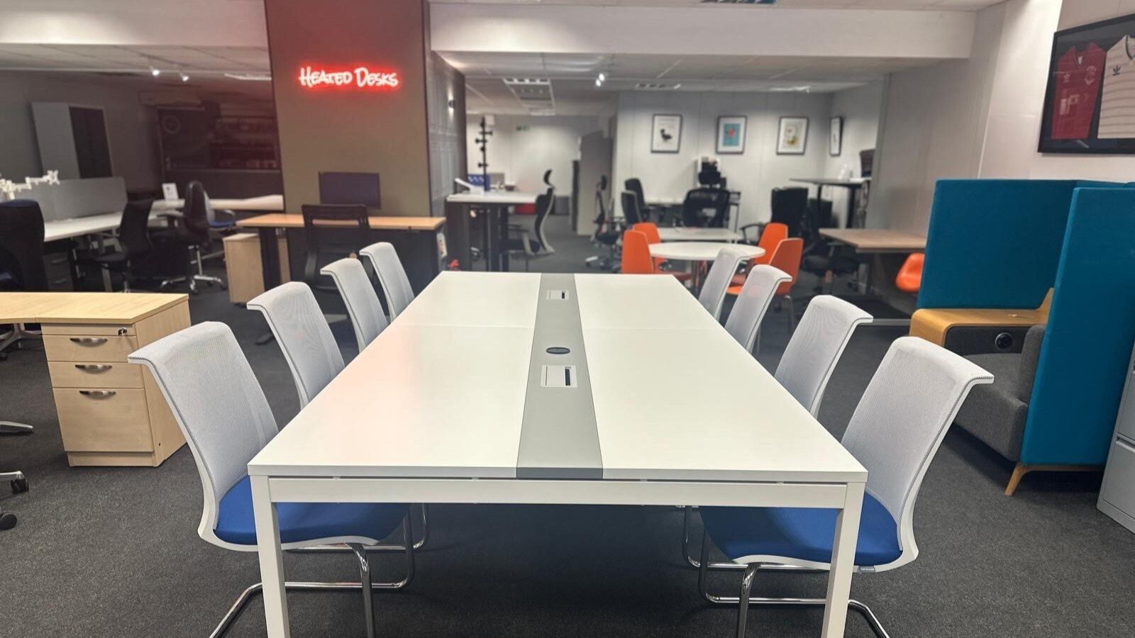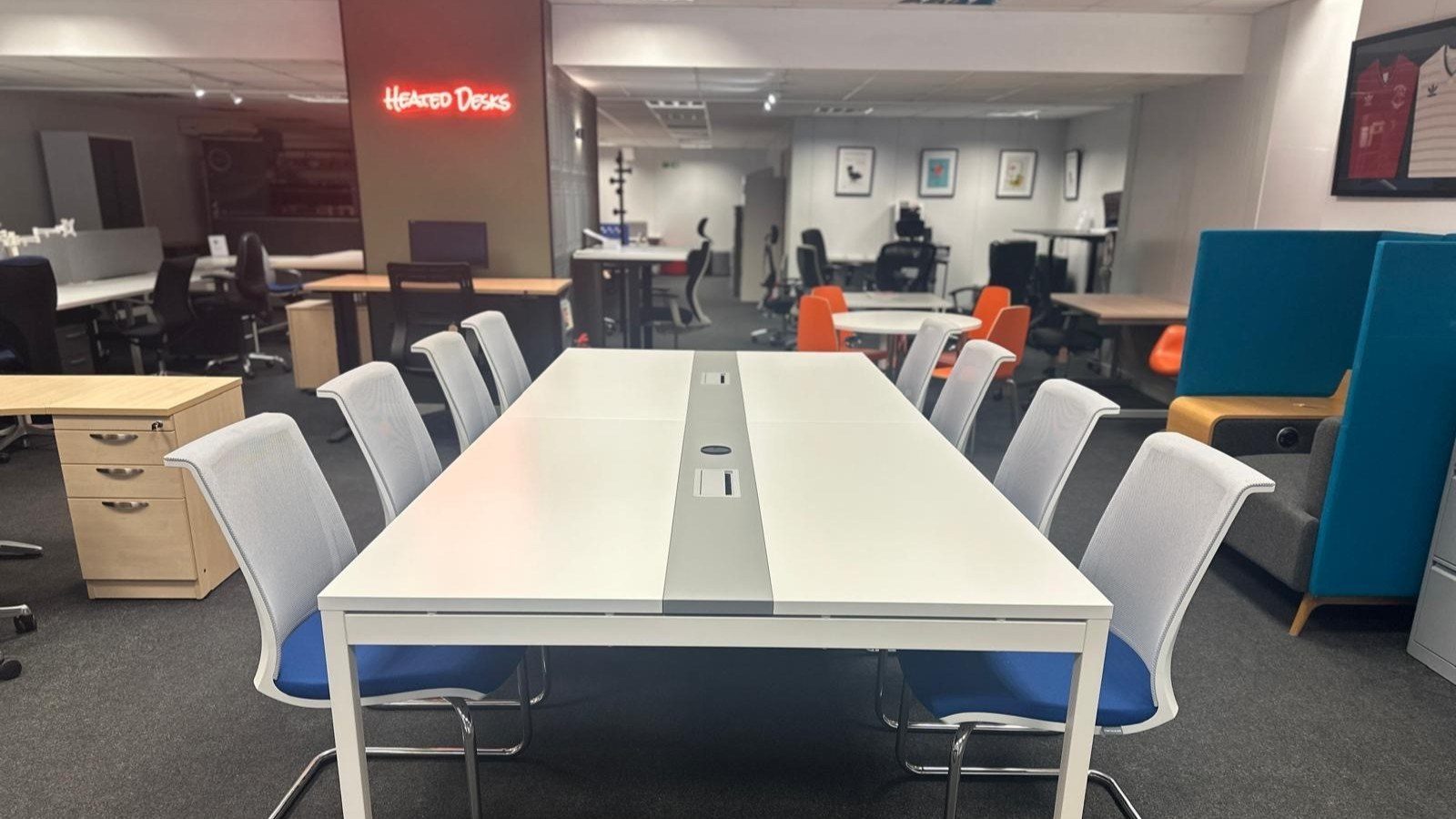 Also featured in the showroom is a fully cable-managed boardroom table, perfect for modern collaborative meetings and executive spaces. Immaculate in condition and highly functional, this sleek table would typically cost £3,500 when bought new. At Greenwell, it’s just £1,000.