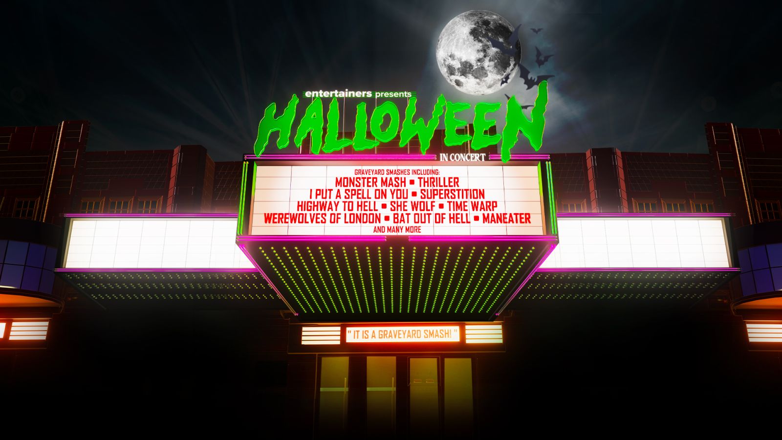This electrifying production resurrects some of the greatest spooky hits of all time. Audiences can expect to hear favourites including Monster Mash, Highway to Hell, The Time Warp, Running Up That Hill, Hungry Like the Wolf, Maneater, Bat Out of Hell, It’s a Kind of Magic, She Wolf and, of course, Thriller.
