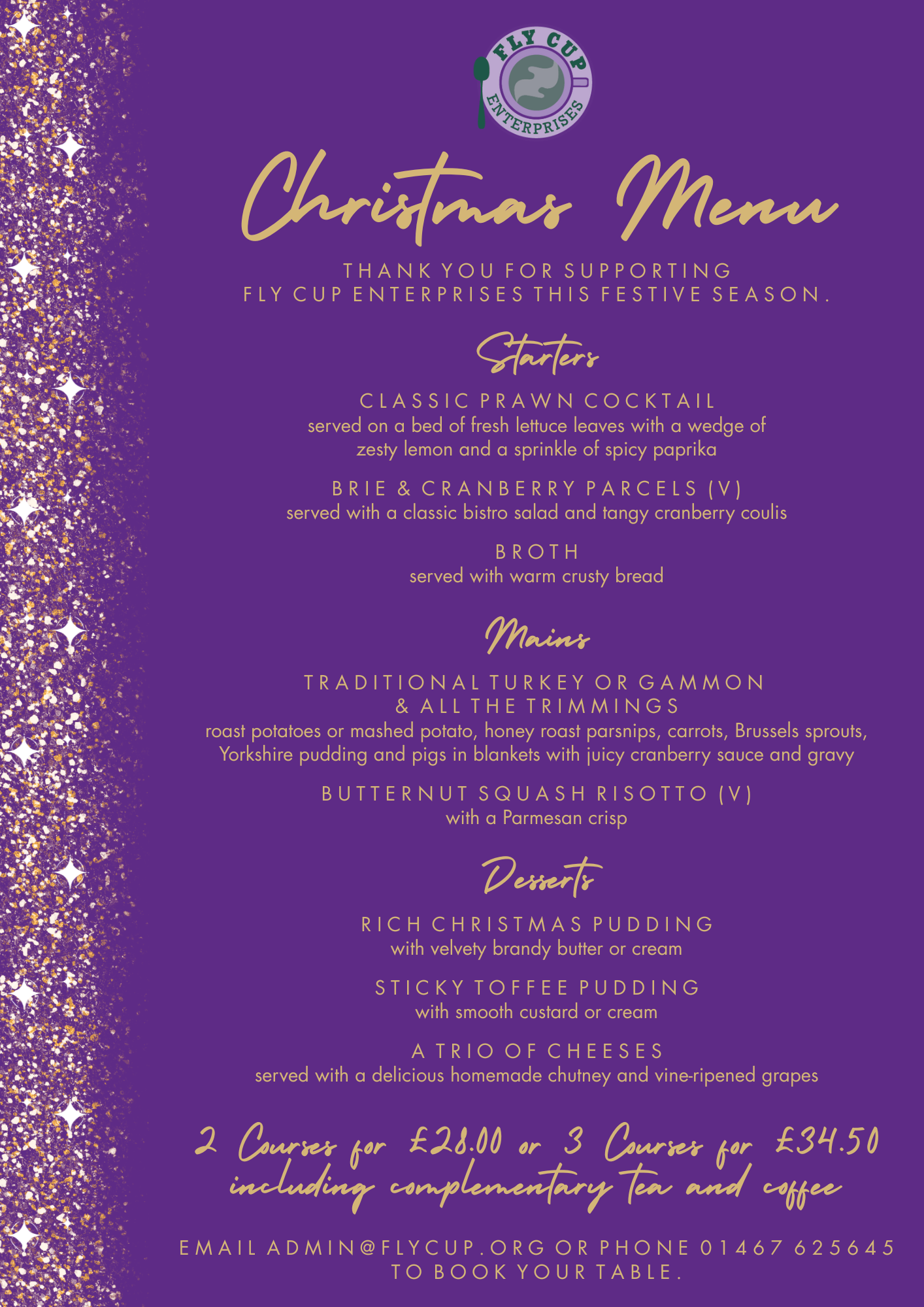 And, if you go along wearing a Christmas jumper, you’ll be entered into Fly Cup Enterprises’ Best Christmas Jumper Competition with the winner receiving a tasty café prize.
