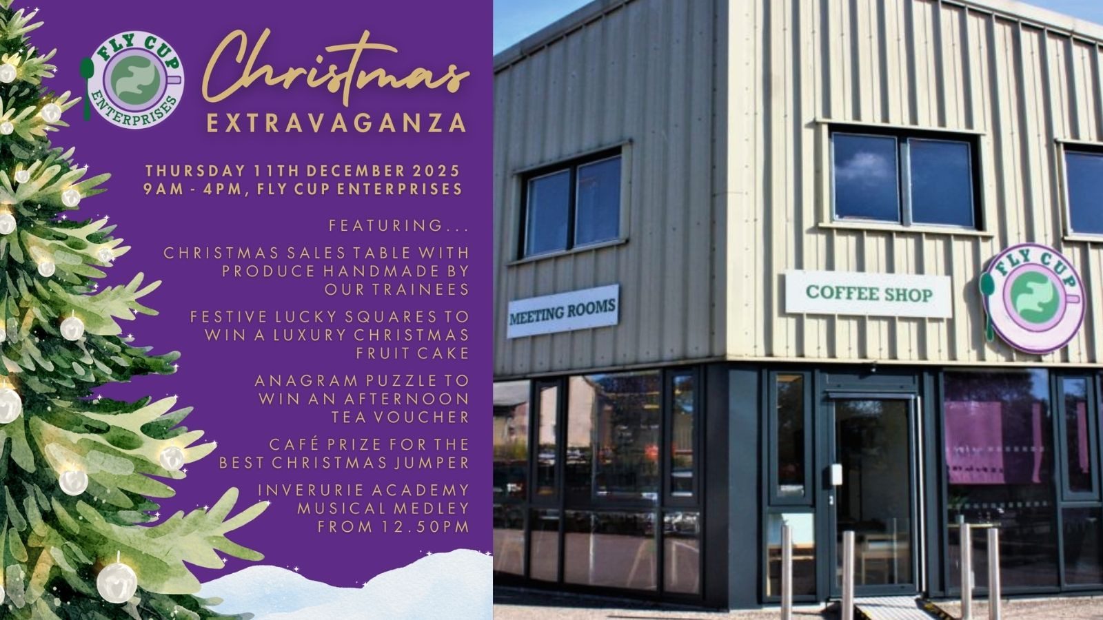 Fly Cup Enterprises’ Christmas Extravaganza will take place on Thursday 11th December 2025, from 9am to 4pm, at Burghmuir Circle, Inverurie, AB51 4FS. For more details, check out Fly Cup Enterprises’ social media pages.