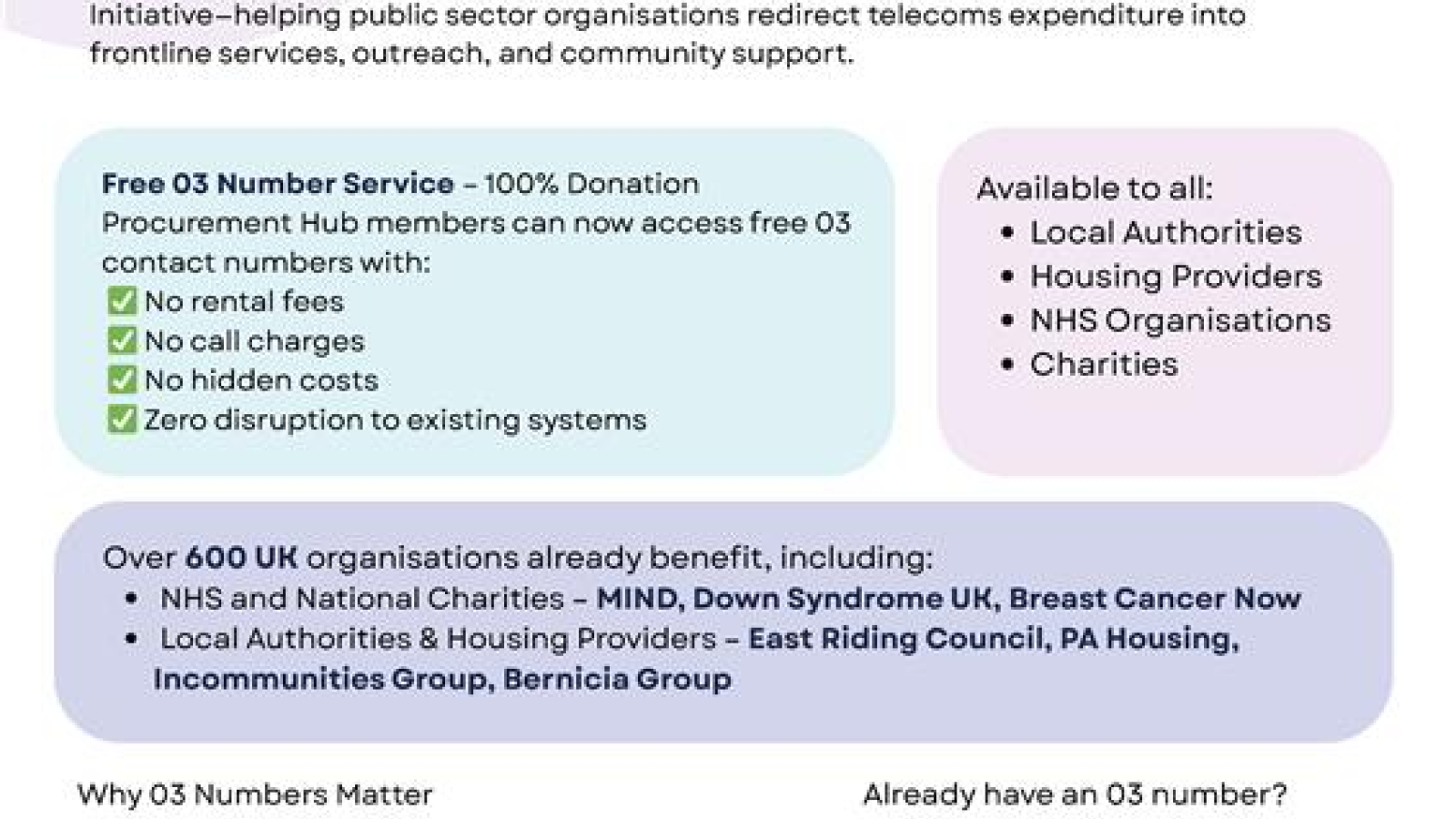 Participating organisations can request a new 03 number or transfer an existing one at no cost, helping to maintain trusted and professional communications with the public.