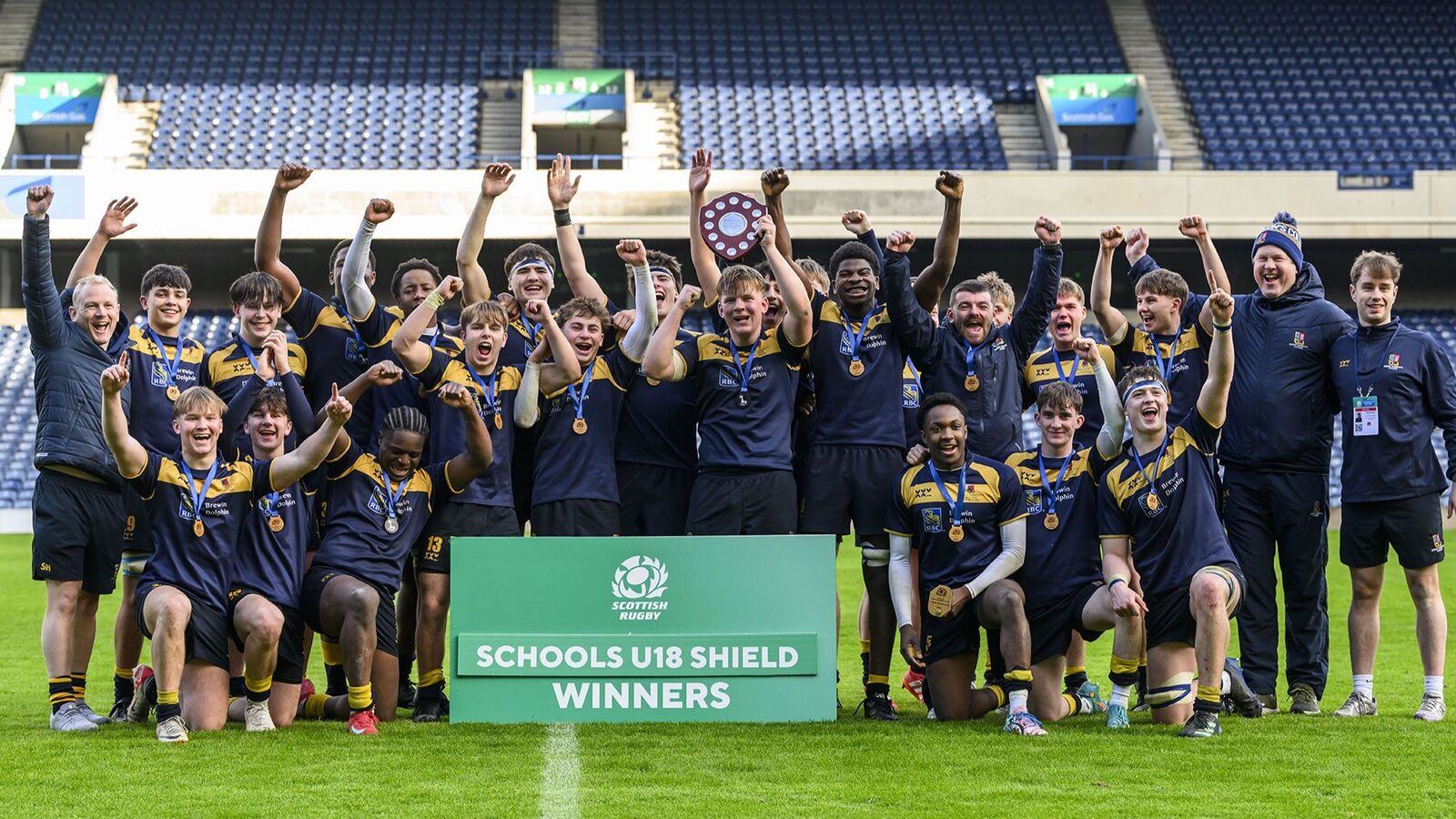 Robert Gordon’s College (RGC) celebrated a historic afternoon at Scottish Gas Murrayfield on Saturday 17 January, as the school’s 1st XV were crowned U18 Scottish Schools Shield champions following a dramatic 26-21 victory over Dollar Academy at Scottish Gas Murrayfield.