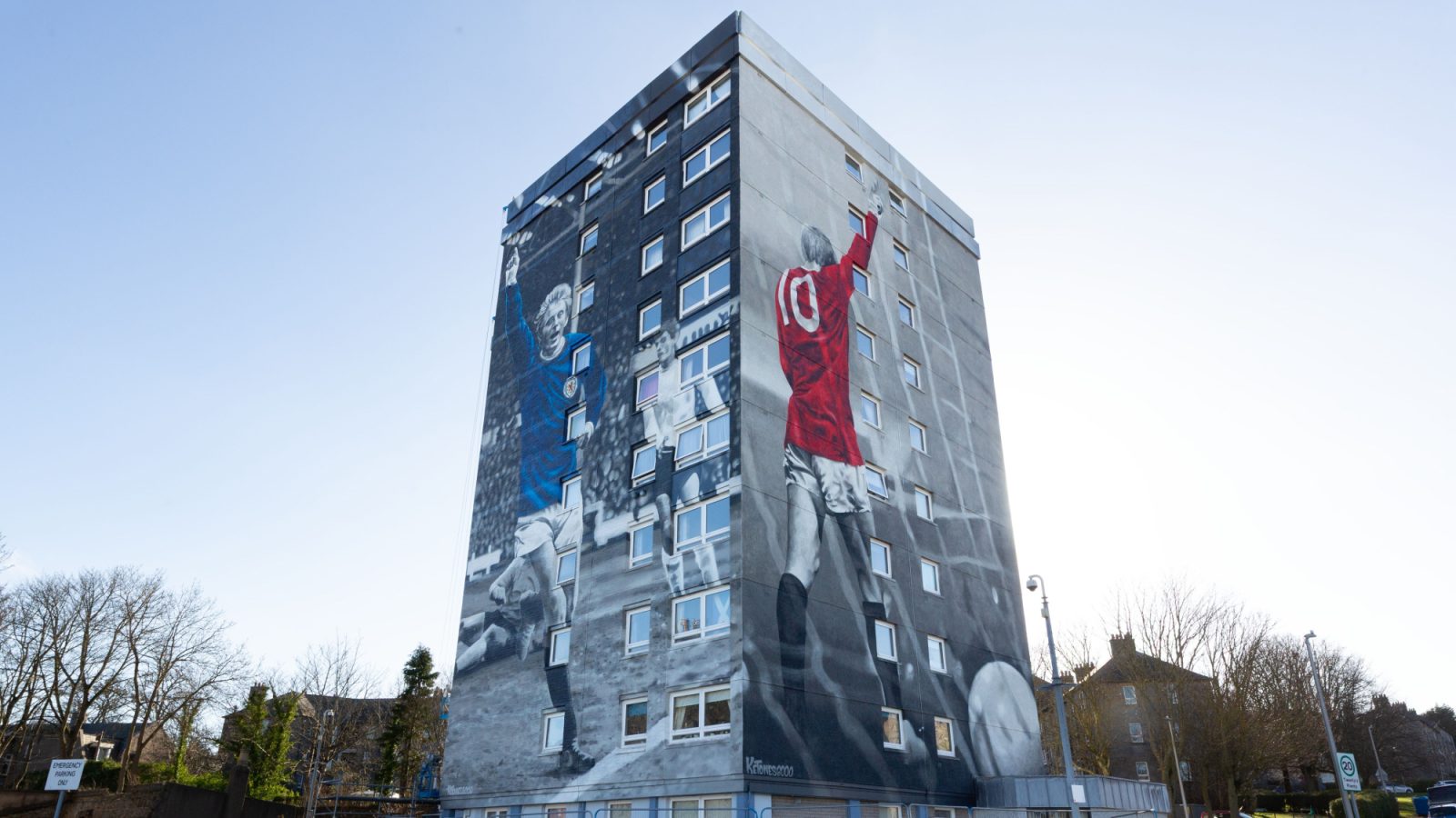 The remarkable artworks, situated on a high-rise block off Great Northern Road, will signpost the entrance to ‘Printfield 10 - A Denis Law Legacy Trail’, a concept initially developed by Communication Design alumni Derek McKechnie, which aims to celebrate the area of the city where Denis grew up and help inspire and enhance the local community.