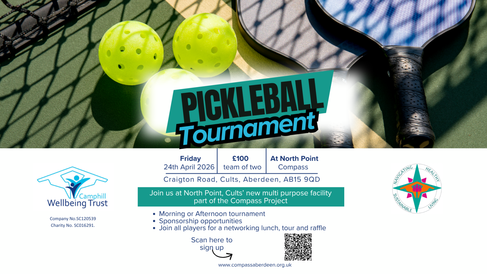Grab your doubles partner and get ready to serve, rally and compete at the Camphill Wellbeing Trust Pickleball Tournament on Friday 24th April. Teams of two – of all abilities - are being sought at a cost of £100 per duo. Take part in the morning or afternoon round robin tournament and enjoy some friendly competition in the new North Point Multipurpose Hall, at the Compass Project, on Craigton Road, Cults.