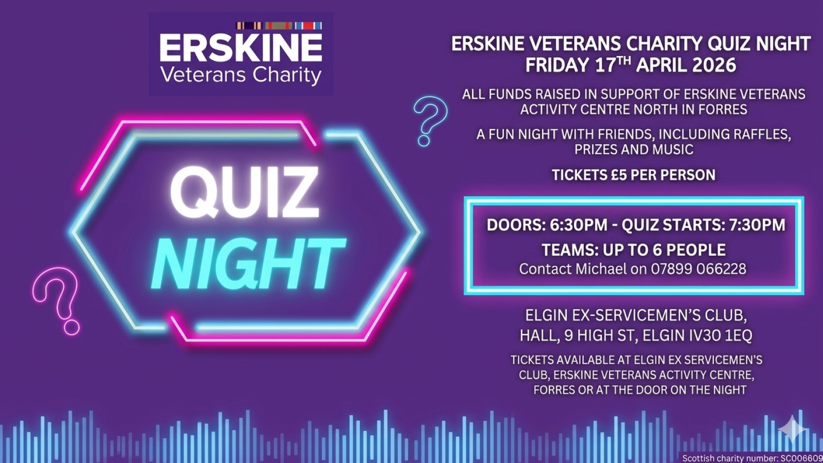 Erskine Veterans Charity, celebrating its 110th anniversary in 2026, is inviting the community to a fun-packed Quiz Night at the Elgin Ex-Servicemen’s Club on Friday, 17th April 2026.