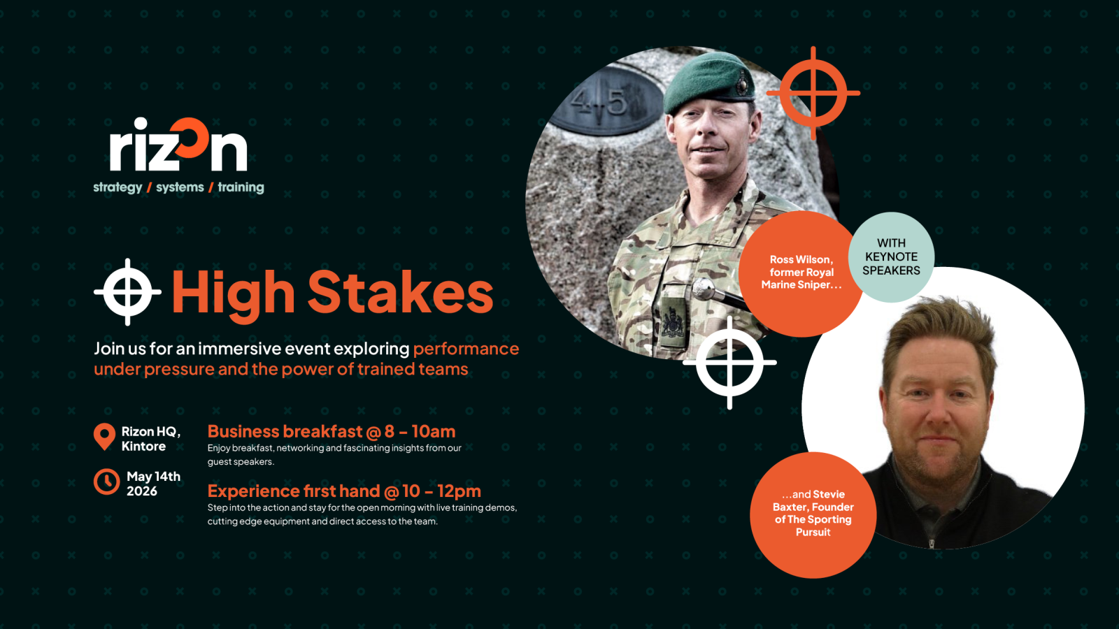 The morning will feature Ross Wilson, a former Royal Marine Sniper with first-hand experience operating in high-pressure environments across the world, alongside Stevie Baxter, a business leader specialising in high-performance team development.